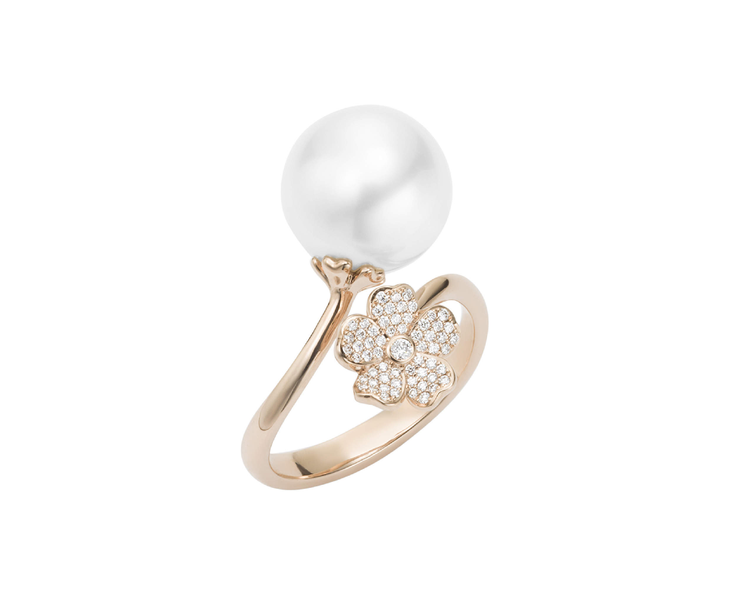 Prsteň Mikimoto z 18-karátového ružového zlata s akoya perlou kvality A+ a briliantmi.